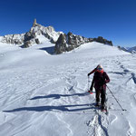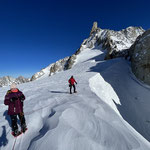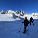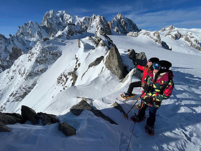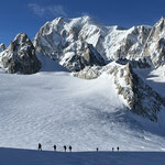 Legati in cordata si attraversa il ghiacciaio del Monte Bianco e si può ammirare il fantastico panorama su le vallate della Valle d'Aosta con tutte le sue stupende montagne!